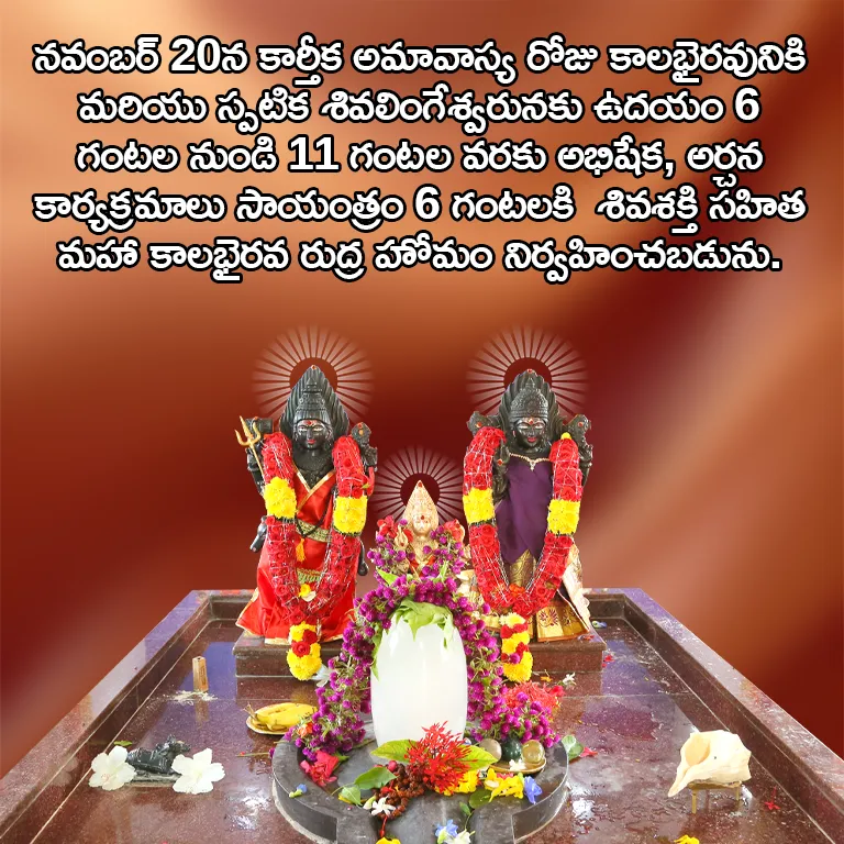 Sri Rajashyamala Sametha Sri Swarnakarshana Kalabhairava Temple welcomes all devotees to participate in the auspicious spiritual events and homams scheduled during the holy month of November 2025.